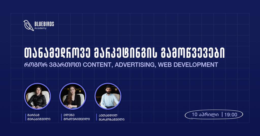 სწორედ ამიტომ ბინზესებისთვის, სტარტაპებისთვის და Full Stack მარკეტერობის მსურველებისთვის შევიმუშავეთ უნიკალური კურსი, რომელსაც საქართველოს ბაზარზე ალტერნატივა არ აქვს.
